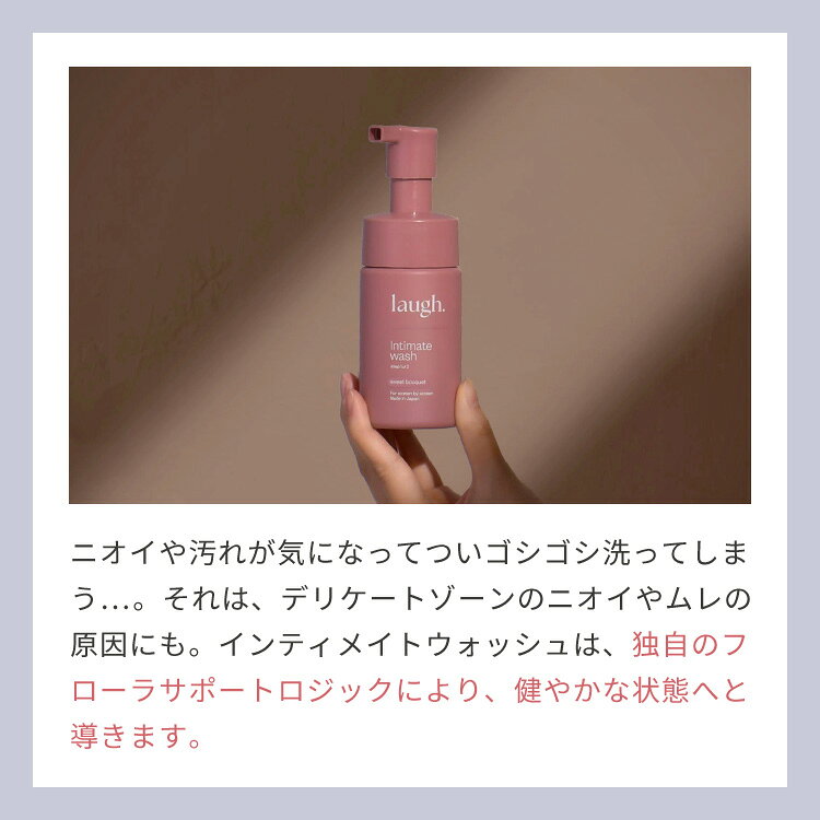 「デリケートゾーンケアの重要性を知り、laugh.を購入しました。使用感が優しくて、洗った後のさっぱり感と潤いのバランスが絶妙です。パートナーからも『良い香りがする』と言われて嬉しかったです。」(30代女性)
