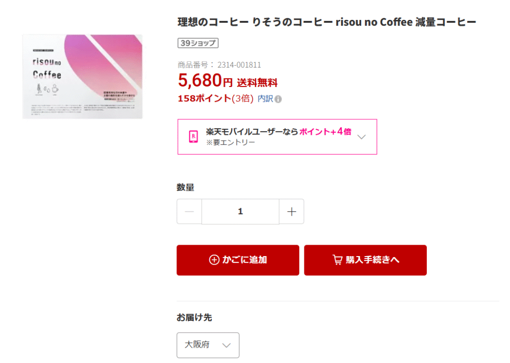 Yahoo!ショッピングでも理想のコーヒーを購入でき、価格は 5,960円 と、楽天市場やAmazonとほぼ同じ設定になっています。