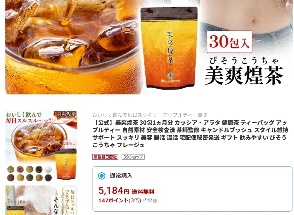 美爽煌茶は、便秘解消や体のスッキリ感を求める方に人気の健康茶です。