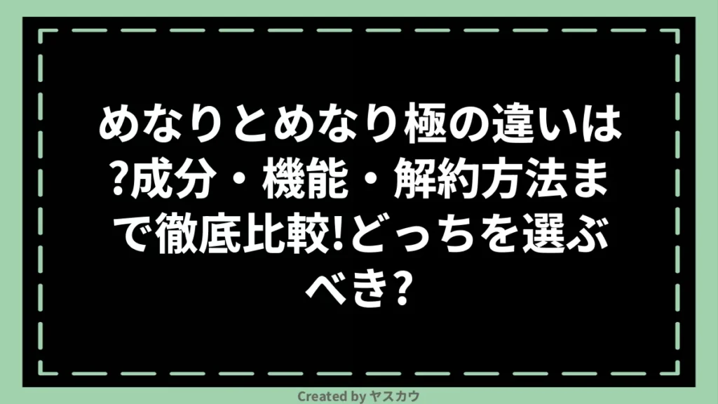 めなりとめなり極の違いは?成分・機能・解約方法まで徹底比較!どっちを選ぶべき?